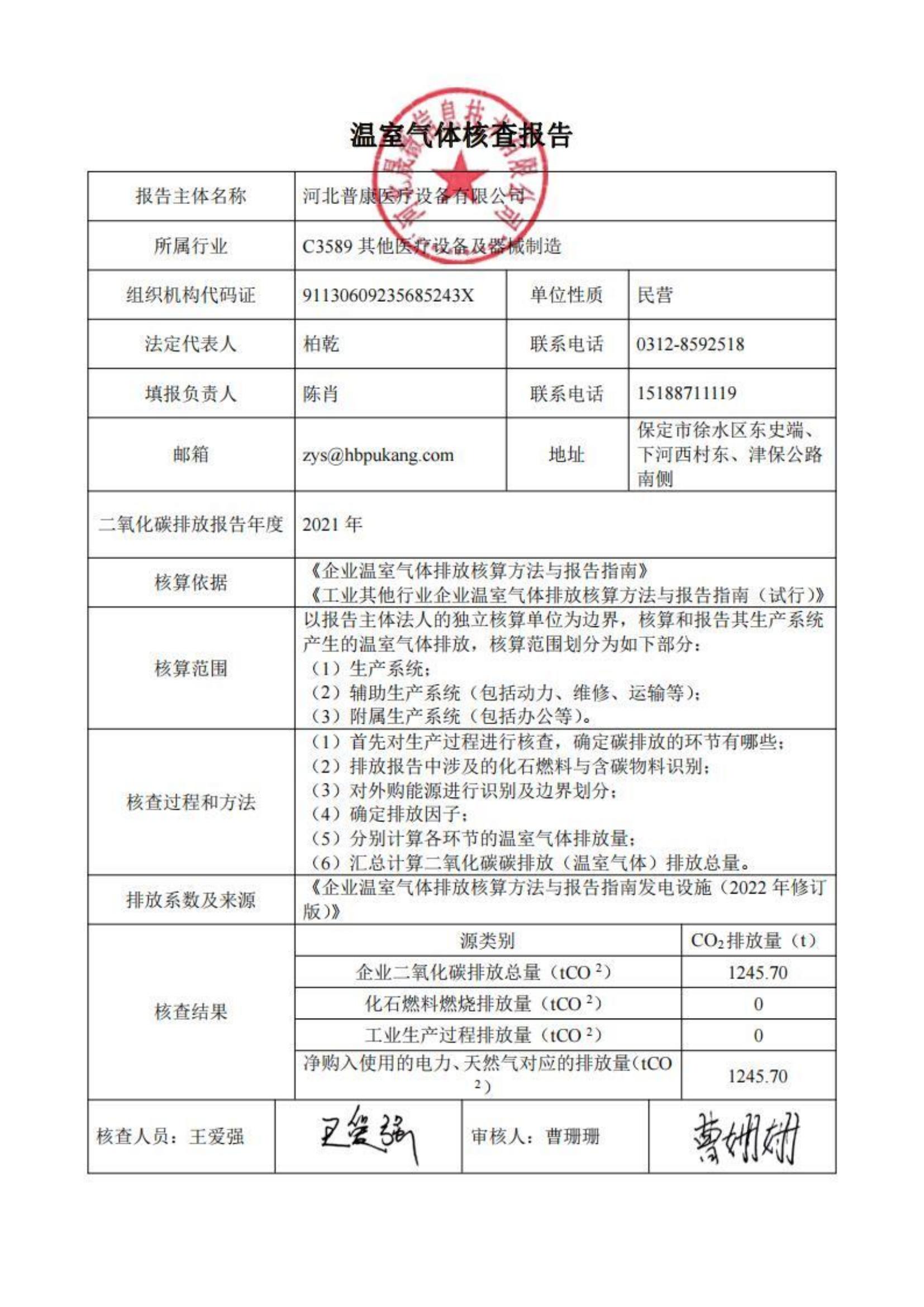 2021年溫室氣體排放核查公示